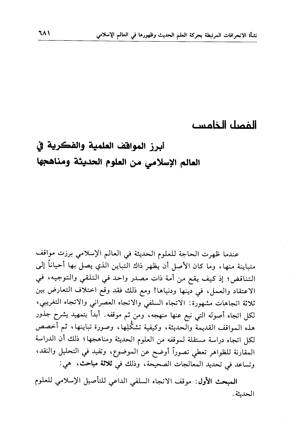 الفصل الخامس أبرز المواقف العلمية والفكرية في العالم الإسلامي من العلوم الحديثة ومناهجها