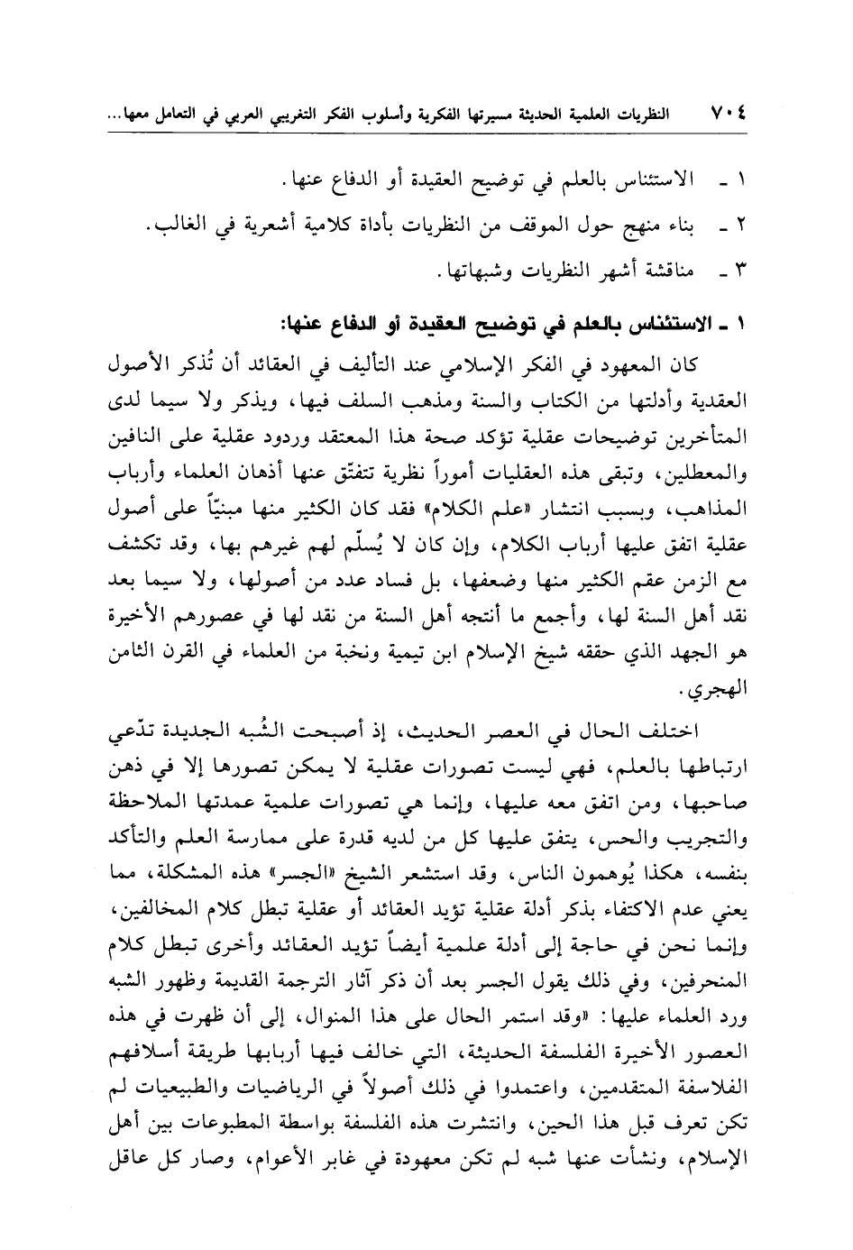 1 - الاستئناس بالعلم في توضيح العقيدة أو الدفاع عنها.