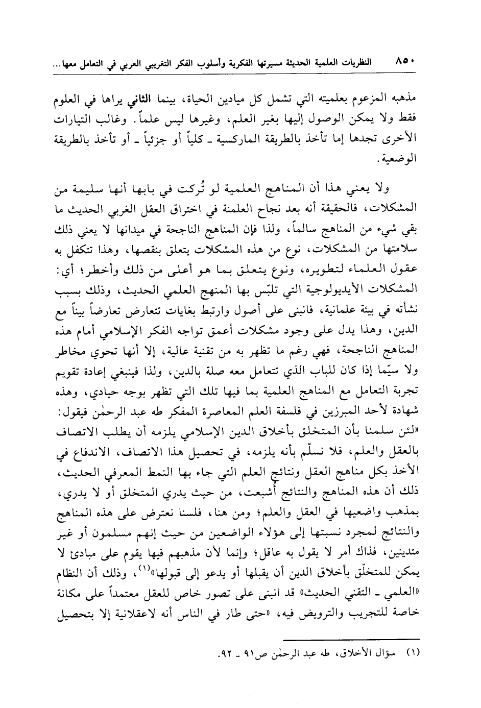 (¬1) سؤال الأخلاق، طه عبد الرحمن ص 91 - 92.
