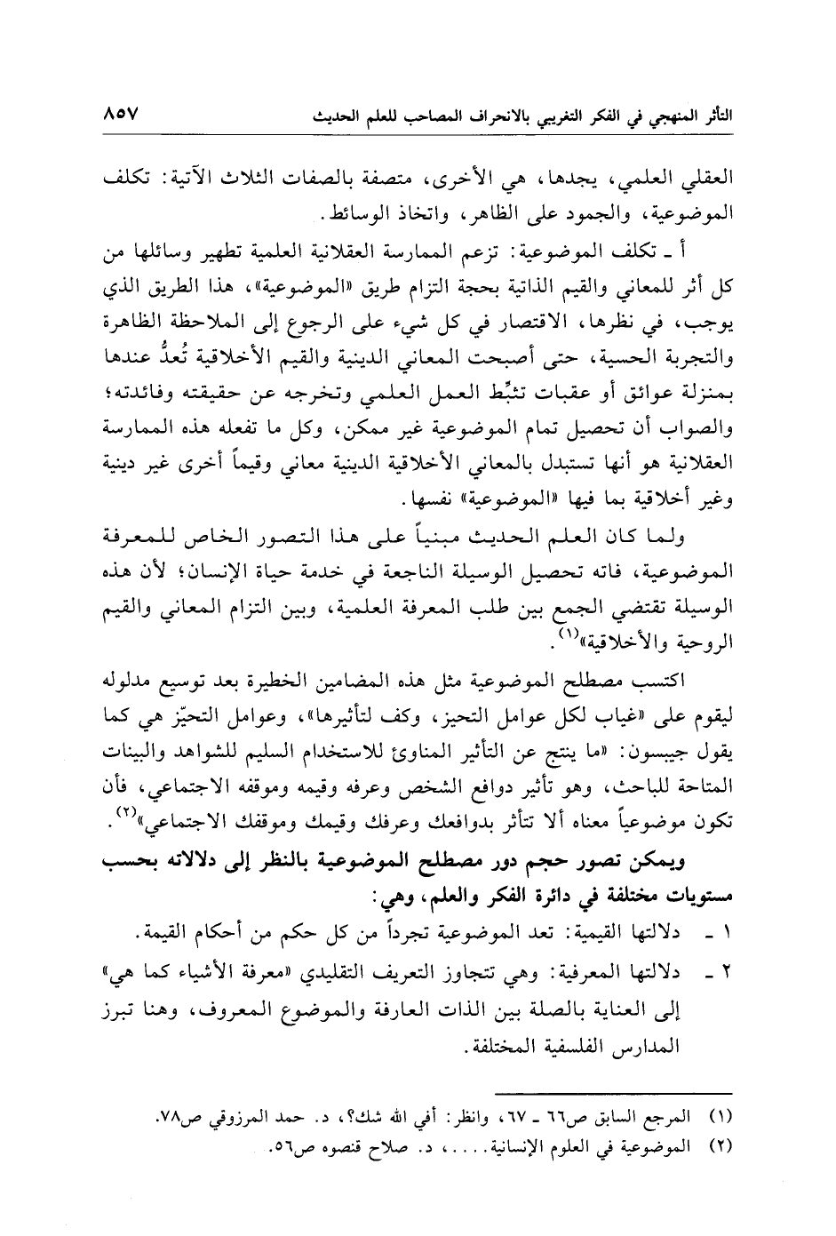 (¬2) الموضوعية في العلوم الإنسانية. . . .، د. صلاح قنصوه ص 56.