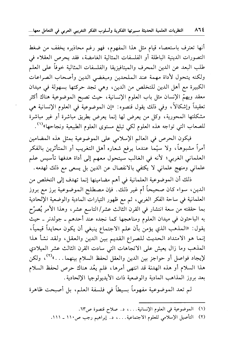 (¬1) الموضوعية في العلوم الإنسانية. . . .، د. صلاح قنصوة ص 63.
