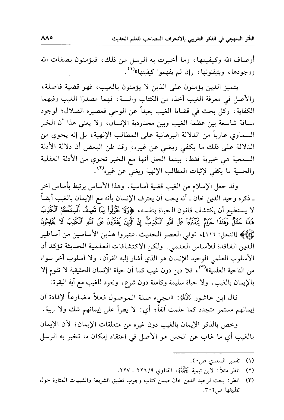 (¬3) انظر: بحث لوحيد الدين خان ضمن كتاب وجوب تطبيق الشريعة والشبهات المثارة حول تطبيقها ص 302.