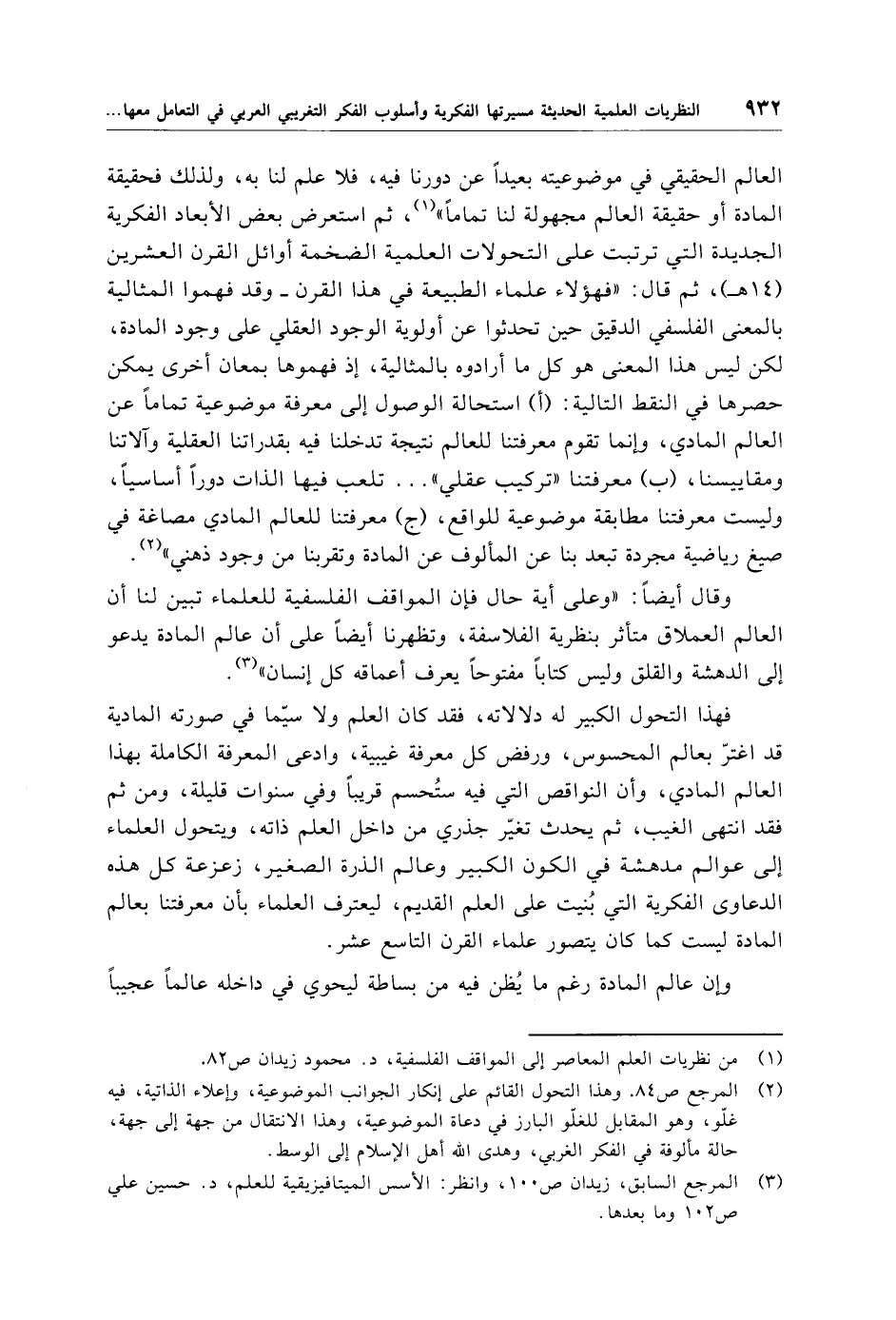 (¬3) المرجع السابق، زيدان ص 100، وانظر: الأسس الميتافيزيقية للعلم، د. حسين علي ص 102 وما بعدها.