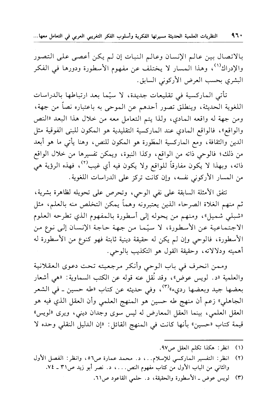 (¬2) انظر: التفسير الماركسي للإسلام .. ، د. محمَّد عمارة ص 56، وانظر: الفصل الأول والثاني من الباب الأول من كتاب مفهوم النص. . . .، د. نصر أبو زيد ص 31 - 74.