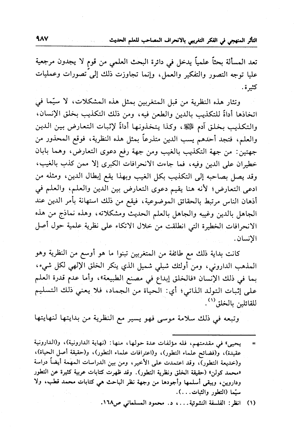 (¬1) انظر: الفلسفة النشوئية. . . .، د. محمود المسلماني ص 168.