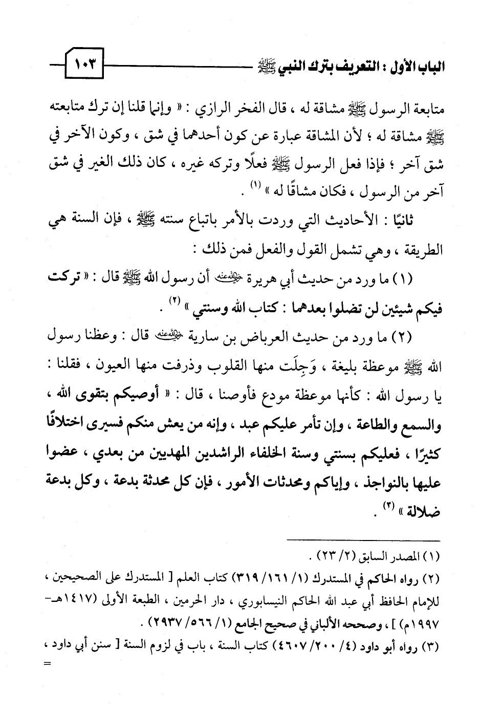 (٣) رواه أبو داود (٤/ ٢٠٠ / ٤٦٠٧) كتاب السنة، باب في لزوم السنة [سنن أبي داود، =