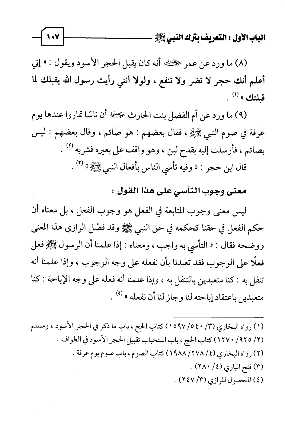 ليس معنى وجوب المتابعة في الفعل هو وجوب الفعل، بل معناه أن حكم الفعل في حقنا كحكمه في حق النبي - صلى الله عليه وسلم - وقد فصّل الرازي هذا المعنى ووضحه فقال: "التأسي به واجب، ومعناه: إذا علمنا أن الرسول - صلى الله عليه وسلم - فعل فعلًا على الوجوب فقد تعبدنا بأن نفعله على وجه الوجوب، وإذا علمنا أنه تنفل به: كنا متعبدين بالتنفل به، وإذا علمنا أنه فعله على وجه الإباحة: كنا متعبدين باعتقاد إباحته لنا وجاز لنا أن نفعله" (٤).