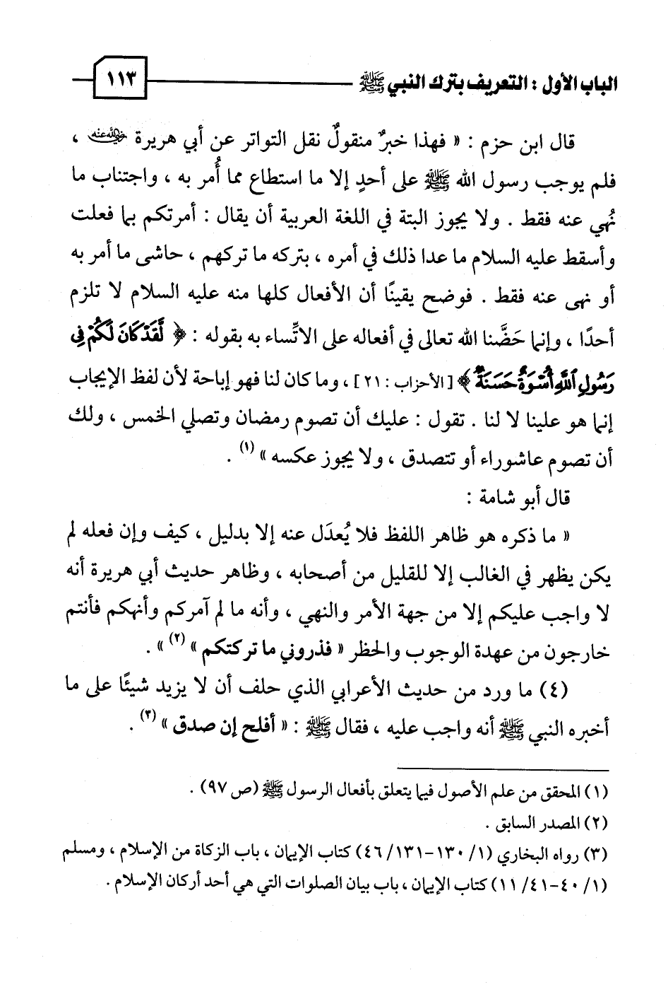 (١) المحقق من علم الأصول فيما يتعلق بأفعال الرسول - صلى الله عليه وسلم - (ص ٩٧).