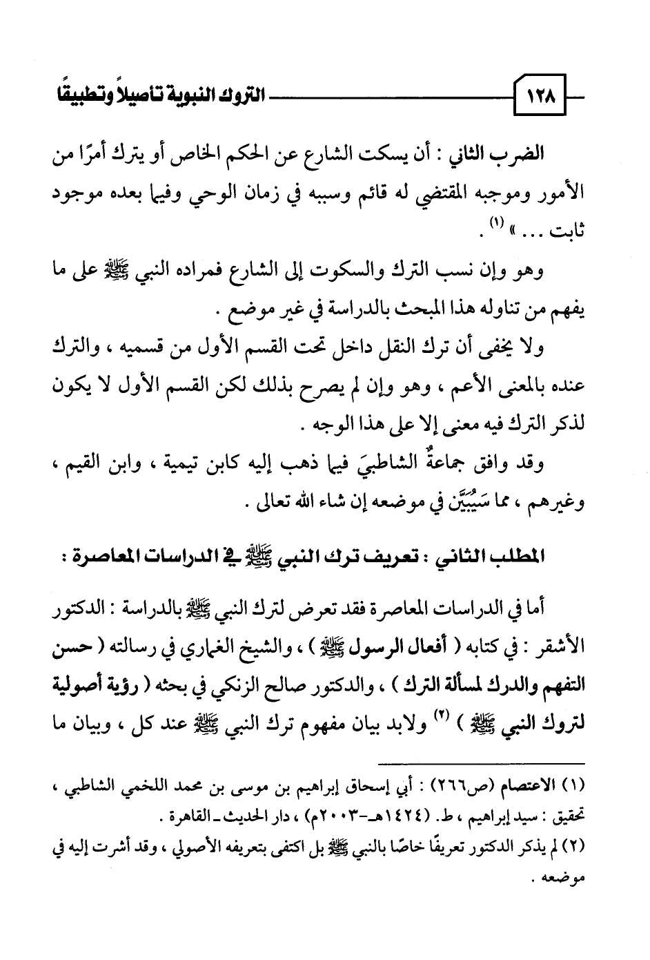 المطلب الثاني: تعريف ترك النبي - صلى الله عليه وسلم - في الدراسات المعاصرة: