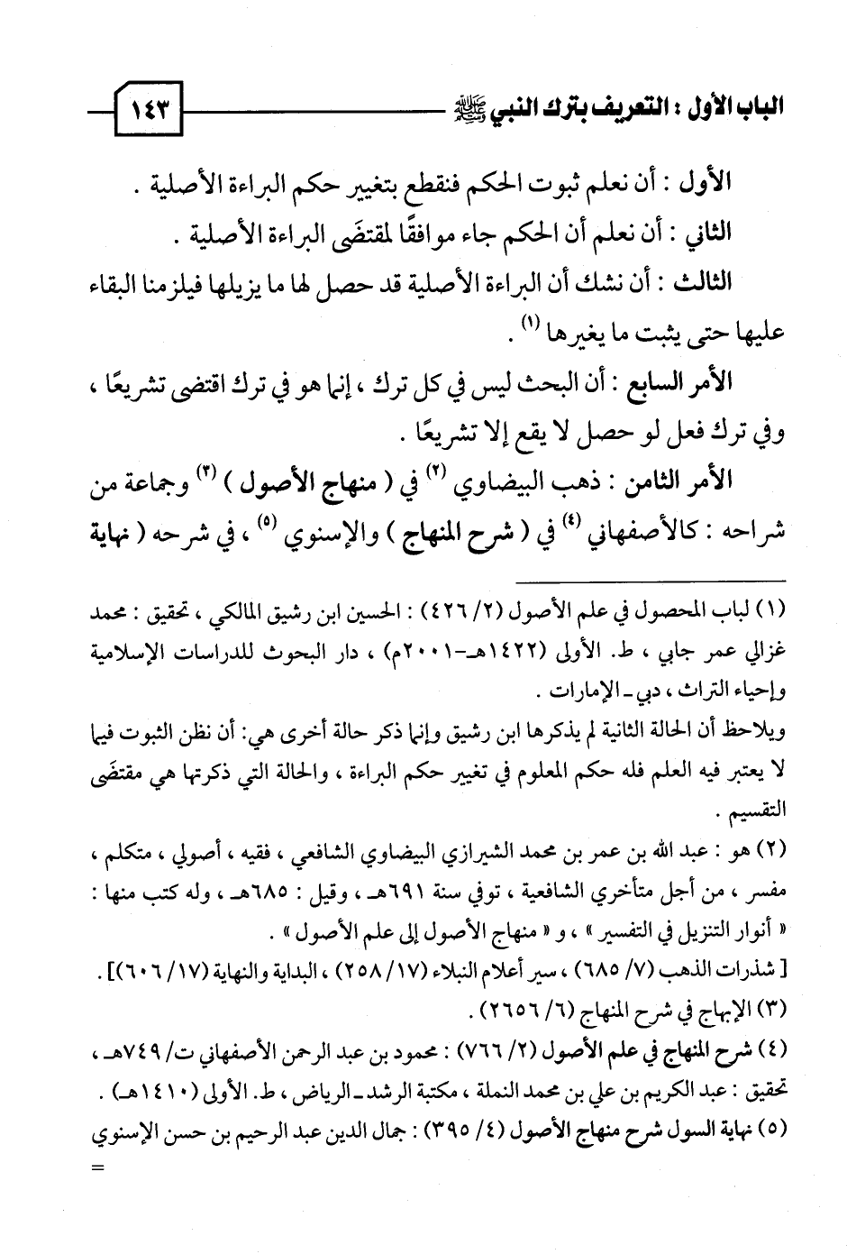 (٤) شرح المنهاج في علم الأصول (٢/ ٧٦٦): محمود بن عبد الرحمن الأصفهاني ت/ ٧٤٩ هـ، تحقيق: عبد الكريم بن علي بن محمد النملة، مكتبة الرشد - الرياض، ط. الأولى (١٤١٠ هـ).