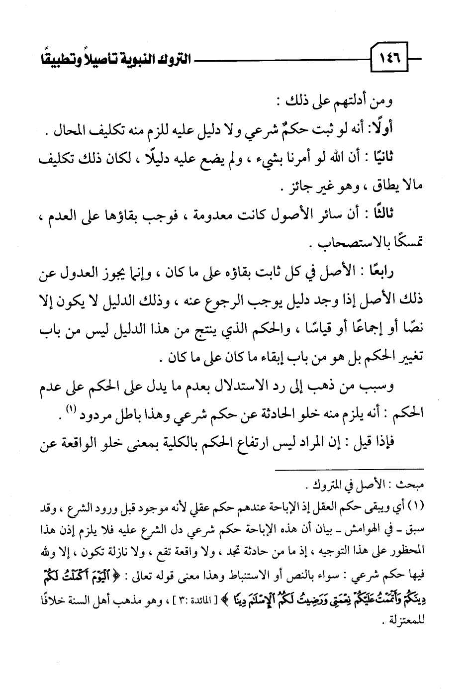 رابعًا: الأصل في كل ثابت بقاؤه على ما كان، وإنما يجوز العدول عن ذلك الأصل إذا وجد دليل يوجب الرجوع عنه، وذلك الدليل لا يكون إلا نصًا أو إجماعًا أو قياسًا، والحكم الذي ينتج من هذا الدليل ليس من باب تغيير الحكم بل هو من باب إبقاء ما كان على ما كان.