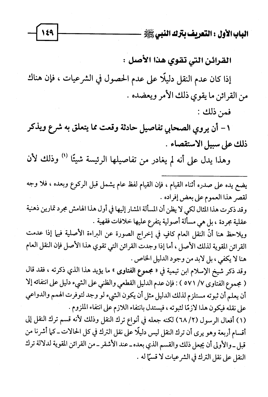 (١) أفعال الرسول (٢/ ٦٨) لكنه جعله في أنواع ترك النقل وذلك لأنه قسم ترك النقل إلى أقسام أربعة وهو يرى أن ترك النقل ليس دليلًا على نقل الترك في كل الحالات - كما أشرنا من قبل - والأولى أن يجعل ذلك والقسم الذي بعده - عند الأشقر - من القرائن المقوية لدلالة ترك النقل على نقل الترك في الشرعيات لا قسمًا له.
