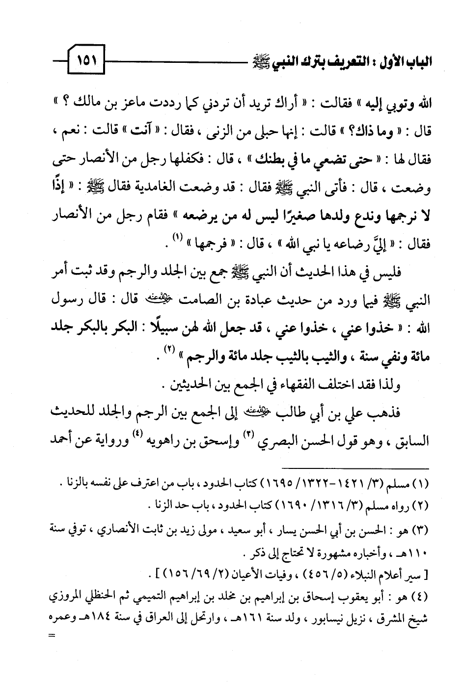 (٢) رواه مسلم (٣/ ١٣١٦ / ١٦٩٥) كتاب الحدود، باب حد الزنا.