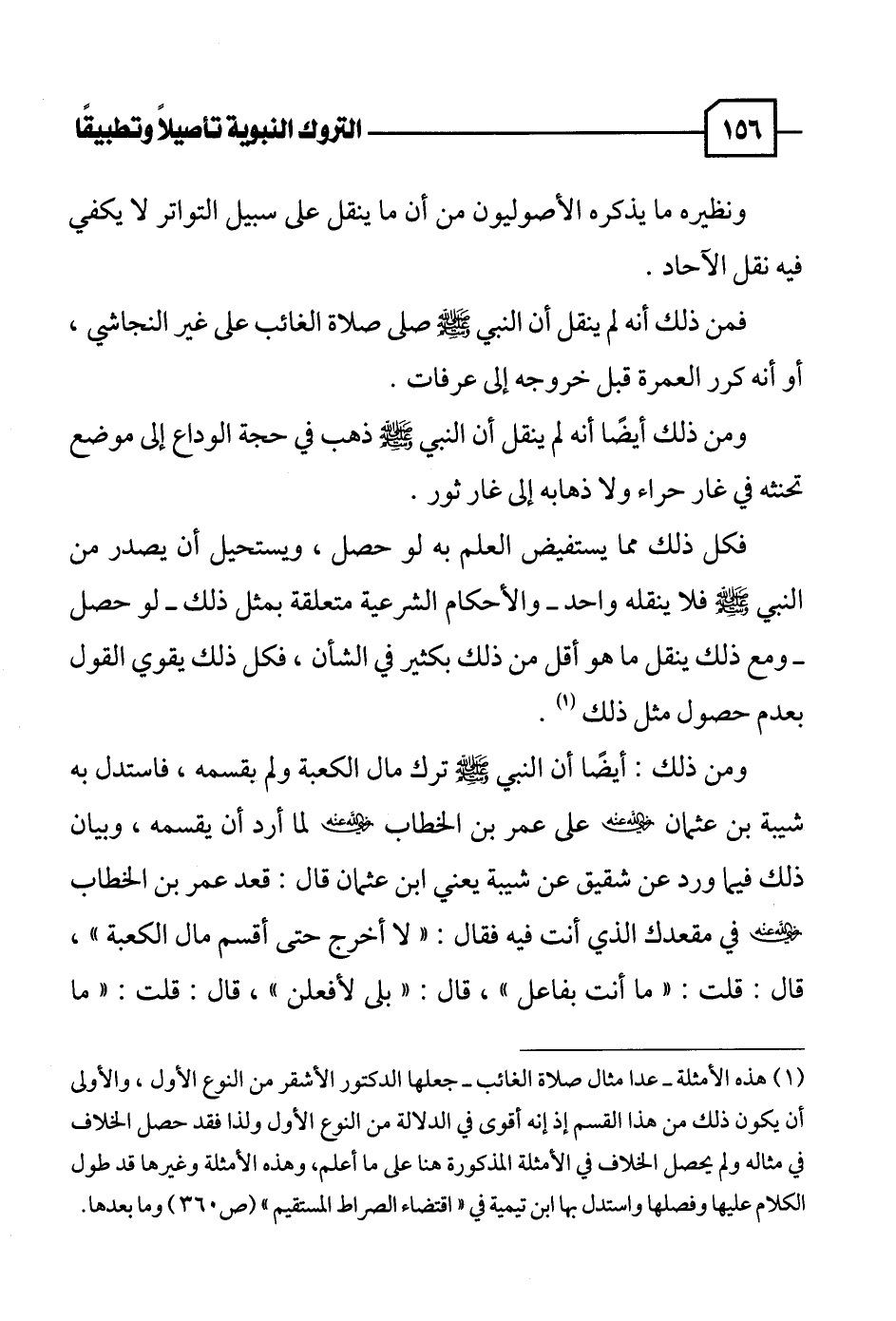 (١) هذه الأمثلة - عدا مثال صلاة الغائب - جعلها الدكتور الأشقر من النوع الأول، والأولى أن يكون ذلك من هذا القسم إذ إنه أقوى في الدلالة من النوع الأول ولذا فقد حصل الخلاف في مثاله ولم يحصل الخلاف في الأمثلة المذكورة هنا على ما أعلم، وهذه الأمثلة وغيرها قد طول الكلام عليها وفصلها واستدل بها ابن تيمية في "اقتضاء الصراط المستقيم" (ص ٣٦٠) وما بعدها.