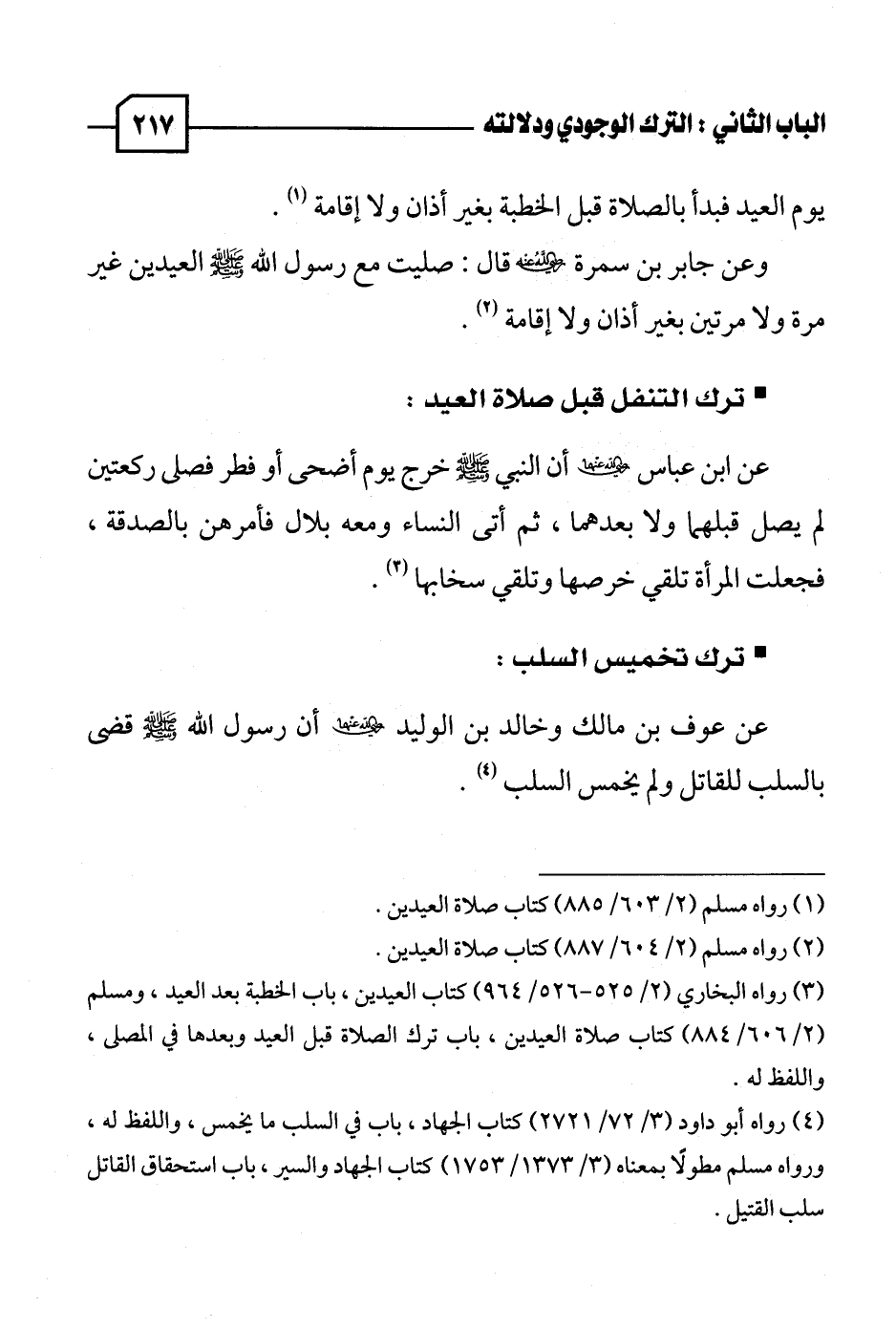 (٤) رواه أبو داود (٣/ ٧٢ / ٢٧٢١) كتاب الجهاد، باب في السلب ما يخمس، واللفظ له، ورواه مسلم مطولًا بمعناه (٣/ ١٣٧٣ / ١٧٥٣) كتاب الجهاد والسير، باب استحقاق القاتل سلب القتيل.