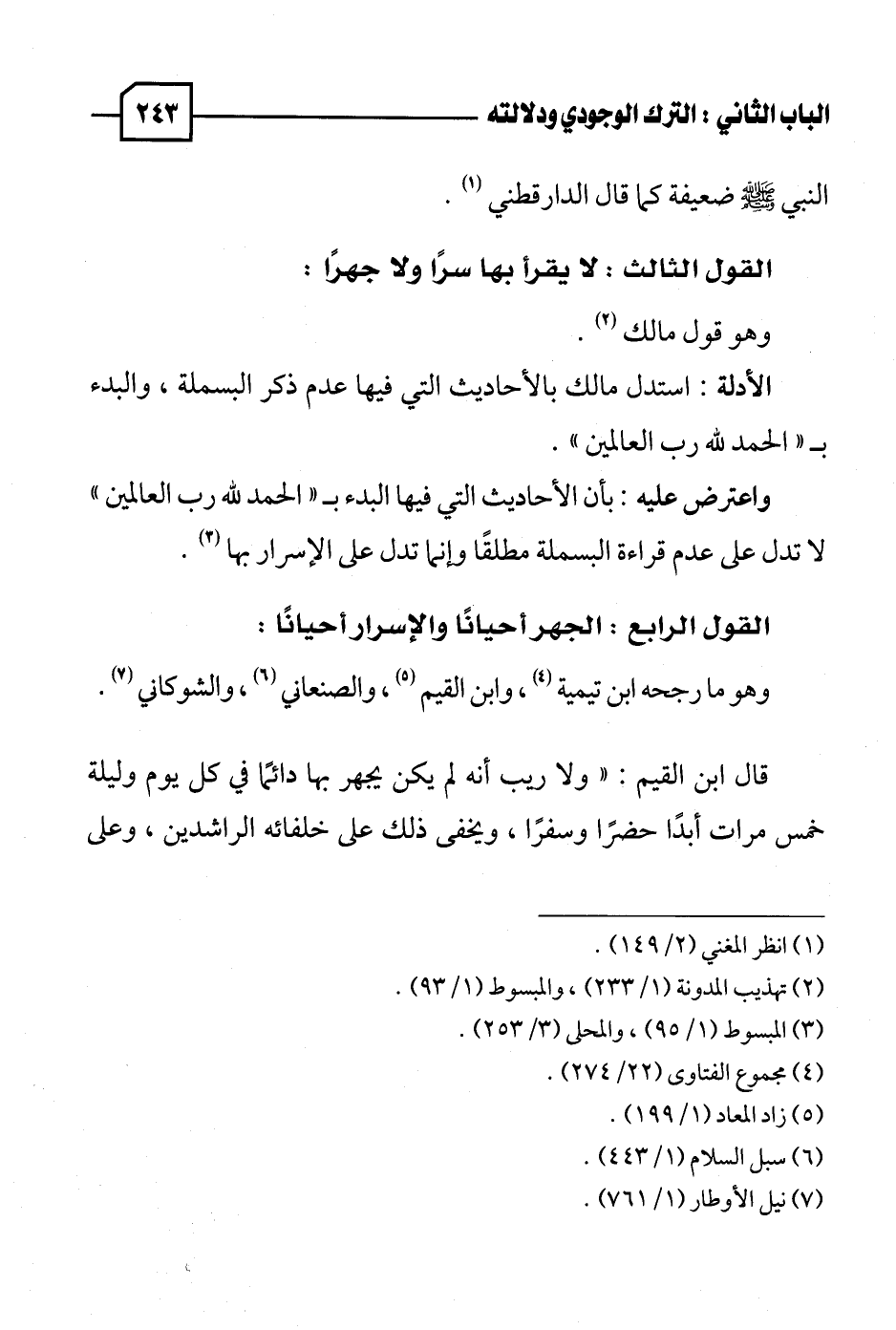 واعترض عليه: بأن الأحاديث التي فيها البدء بـ "الحمد لله رب العالمين" لا تدل على عدم قراءة البسملة مطلقًا وإنما تدل على الإسرار بها (٣).