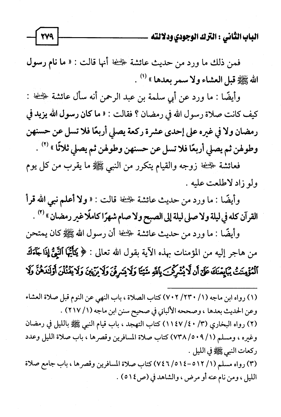 (٢) رواه البخاري (٣/ ٤٠ / ١١٤٧) كتاب التهجد، باب قيام النبي - صلى الله عليه وسلم - بالليل في رمضان وغيره، ومسلم (١/ ٥٠٩ / ٧٣٨) كتاب صلاة المسافرين وقصرها، باب صلاة الليل وعدد ركعات النبي - صلى الله عليه وسلم - في الليل.