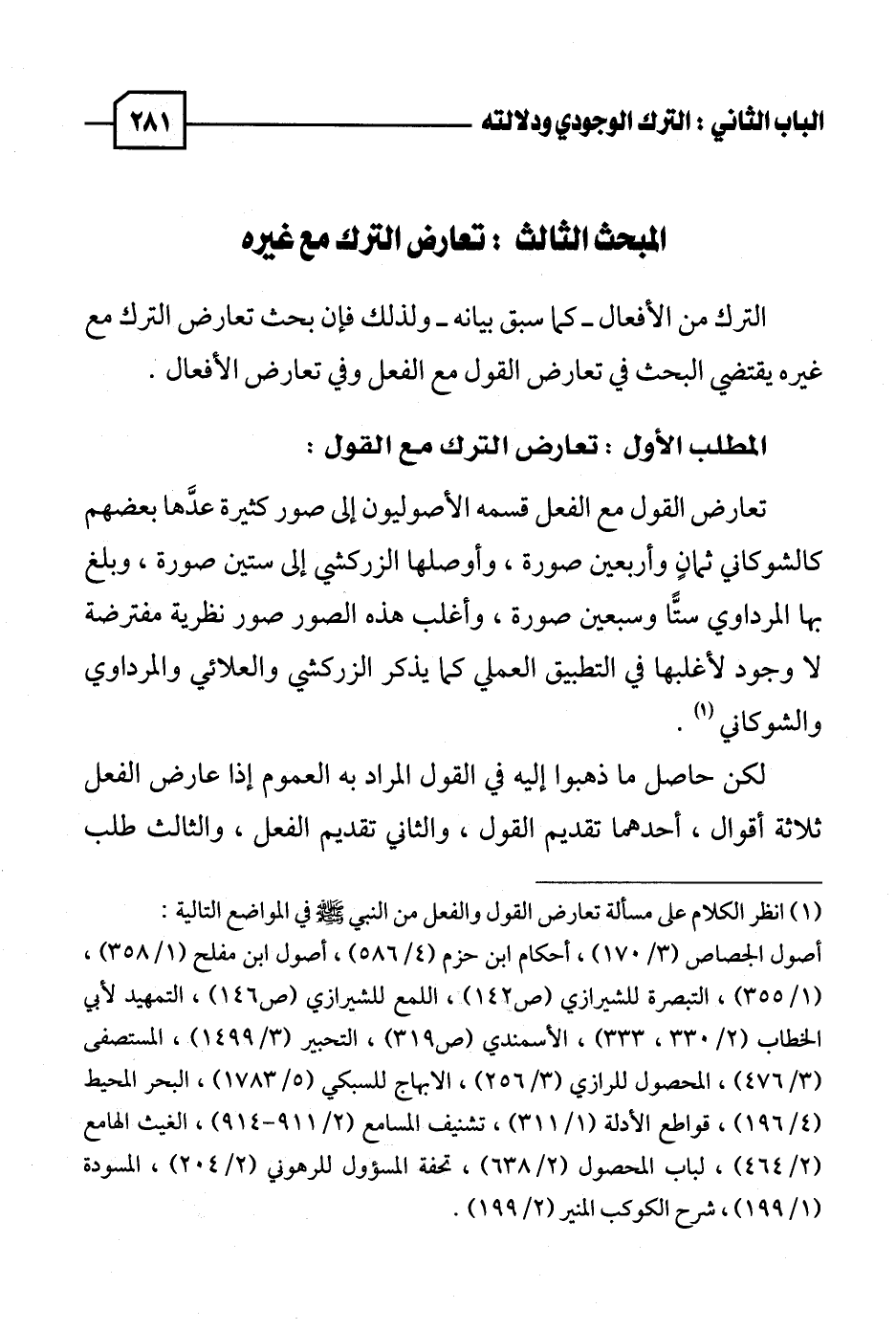 الترك من الأفعال - كما سبق بيانه - ولذلك فإن بحث تعارض الترك مع غيره يقتضي البحث في تعارض القول مع الفعل وفي تعارض الأفعال.