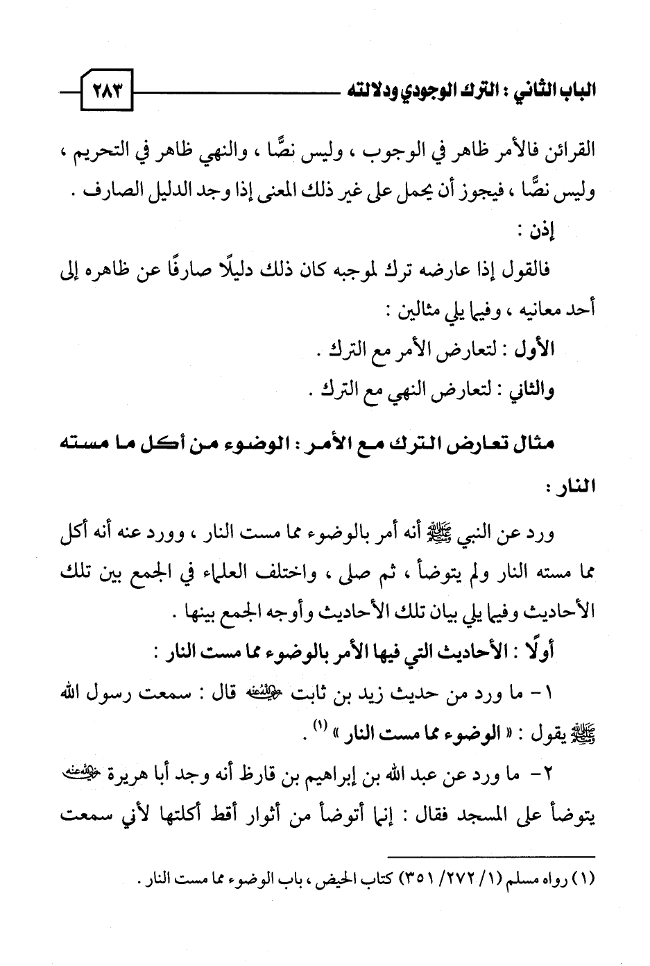 مثال تعارض الترك مع الأمر: الوضوء من أكل ما مسته النار: