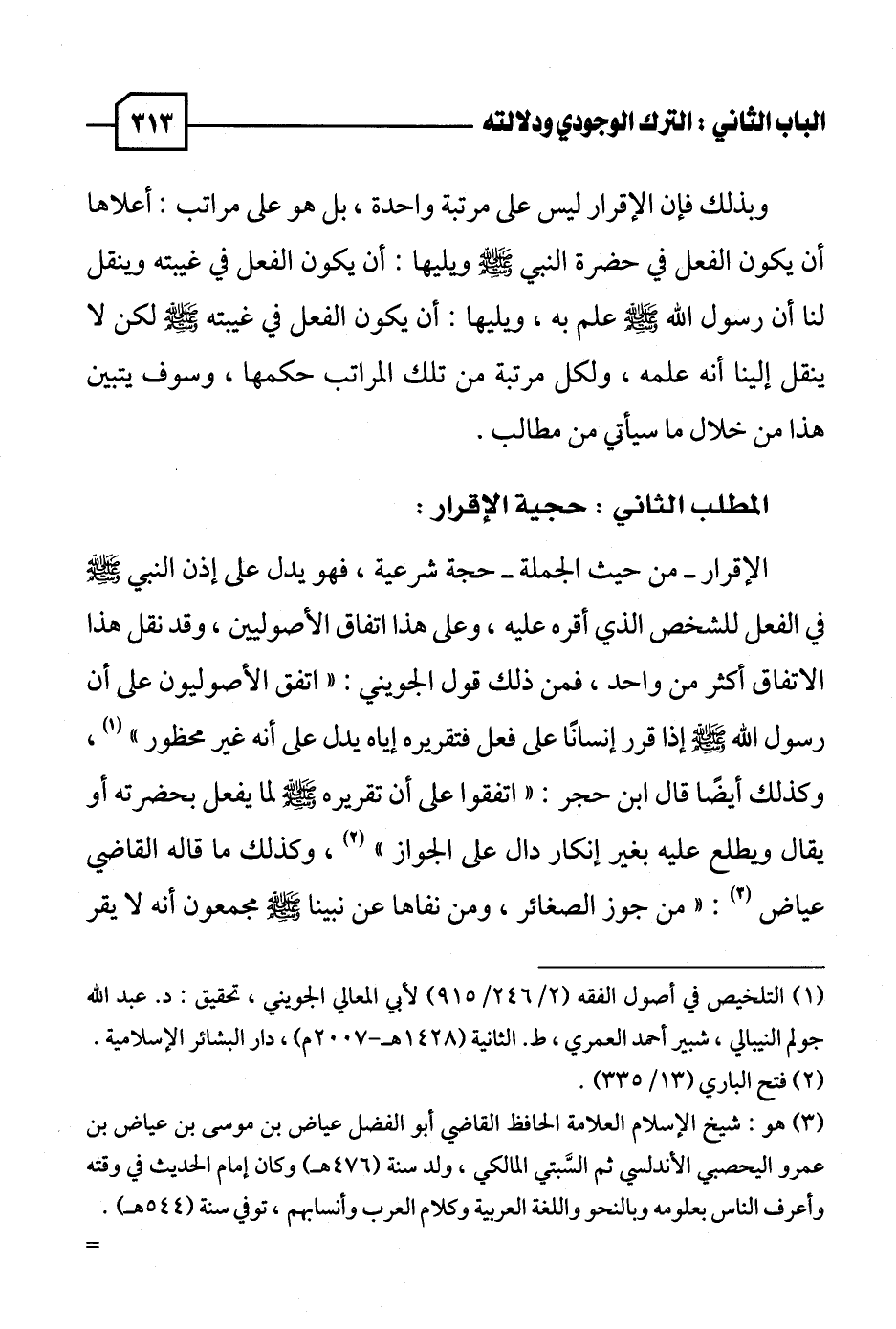 (١) التلخيص في أصول الفقه (٢/ ٢٤٦ / ٩١٥) لأبي المعالي الجويني، تحقيق: د. عبد الله جولم النيبالي، شبير أحمد العمري، ط. الثانية (١٤٢٨ هـ - ٢٠٠٧ م)، دار البشائر الإسلامية.
