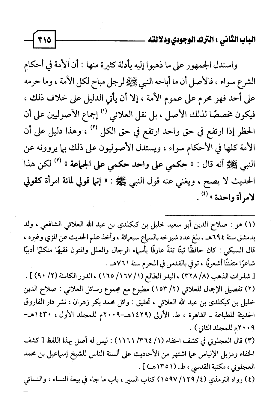 (٢) تفصيل الإجمال للعلائي (٢/ ١٥٣) مطبوع مع مجموع رسائل العلائي: صلاح الدين خليل بن كيكلدى بن عبد الله العلائي، تحقيق: وائل محمد بكر زهران، نشر دار الفاروق الحديثة للطباعة - القاهرة، ط. الأولى (١٤٢٩ هـ - ٢٠٠٩ م للمجلد الأول، ١٤٣٠ هـ - ٢٠٠٩ م للمجلد الثاني).