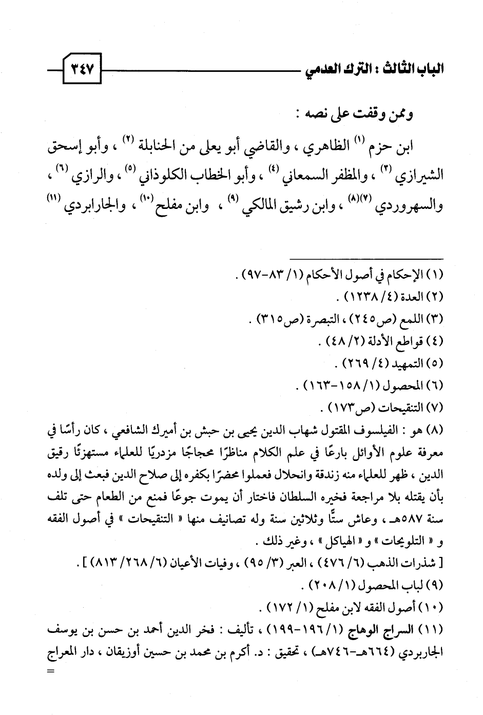 (٩) لباب المحصول (١/ ٢٠٨).