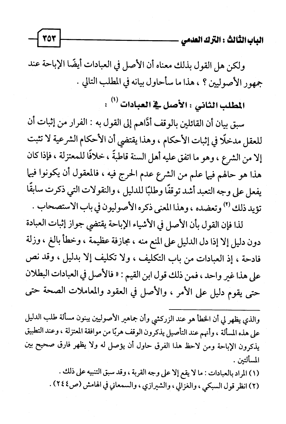 ولكن هل القول بذلك معناه أن الأصل في العبادات أيضًا الإباحة عند جمهور الأصوليين؟، هذا ما سأحاول بيانه في المطلب التالي.