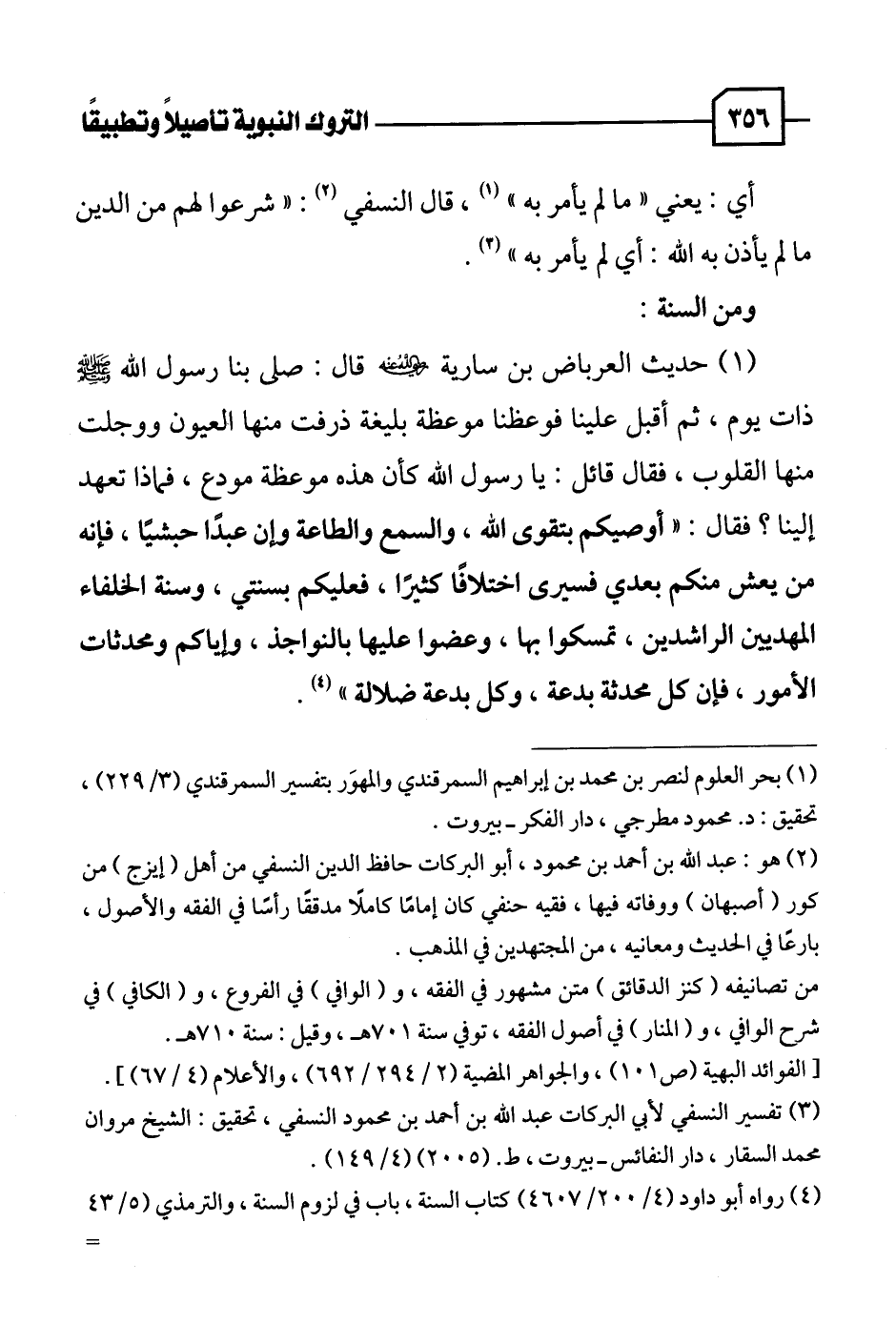 (٤) رواه أبو داود (٤/ ٢٠٠ / ٤٦٠٧) كتاب السنة، باب في لزوم السنة، والترمذي (٥/ ٤٣ =