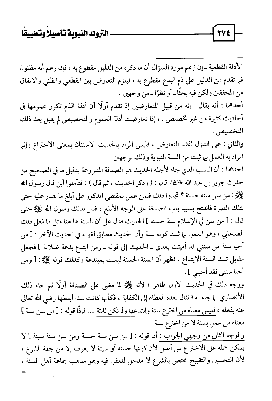 والثاني: على التنزل لفقد التعارض، فليس المراد بالحديث الاستنان بمعنى الاختراع وإنما المراد به العمل بما ثبت من السنة النبوية وذلك لوجهين: