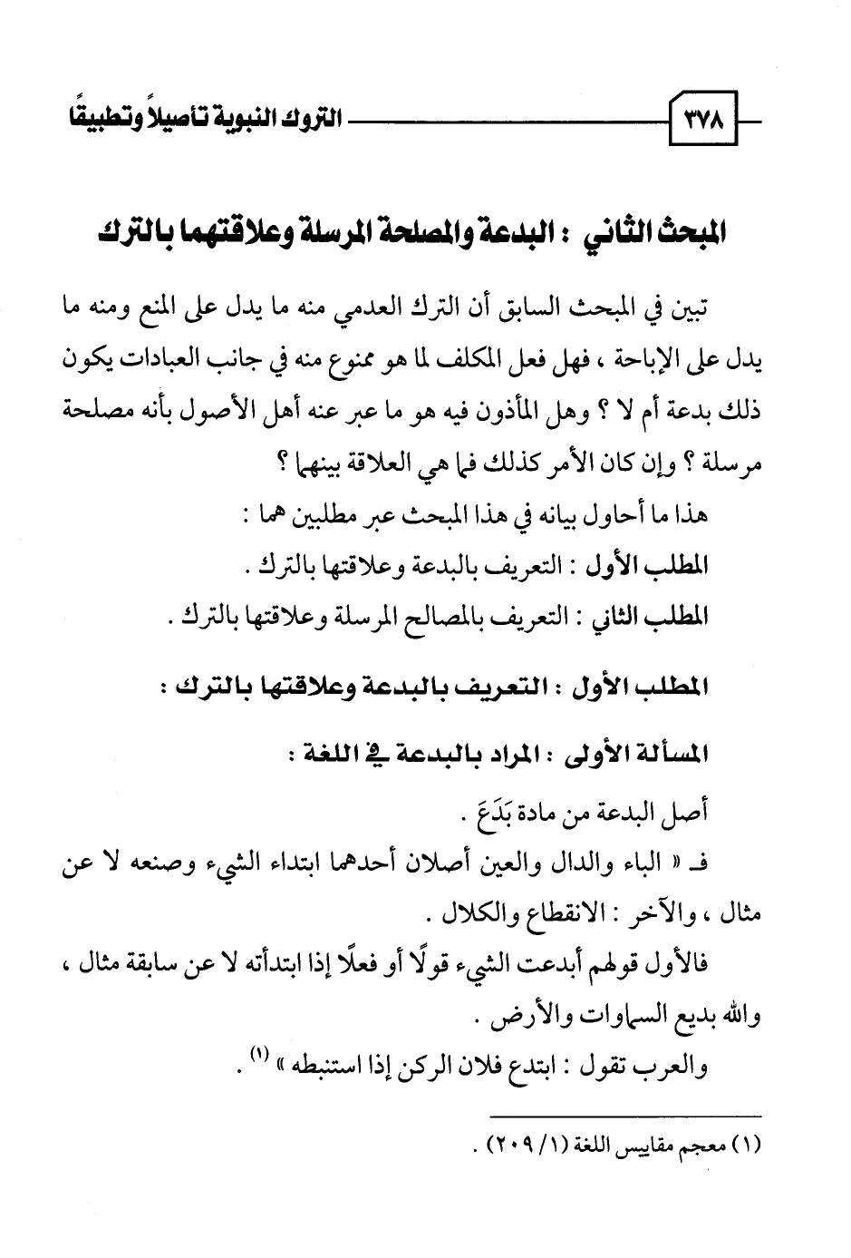 المبحث الثاني: البدعة والمصلحة المرسلة وعلاقتهما بالترك