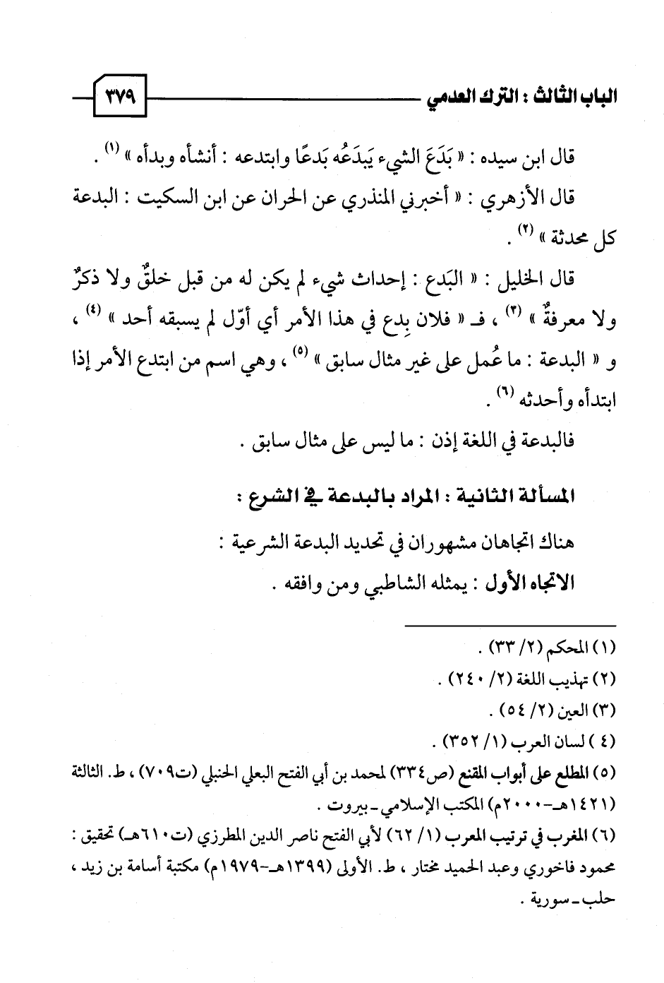 (٦) المغرب في ترتيب المعرب (١/ ٦٢) لأبي الفتح ناصر الدين المطرزي (ت ٦١٠ هـ) تحقيق: محمود فاخوري وعبد الحميد مختار، ط. الأولى (١٣٩٩ هـ - ١٩٧٩ م) مكتبة أسامة بن زيد، حلب - سورية.