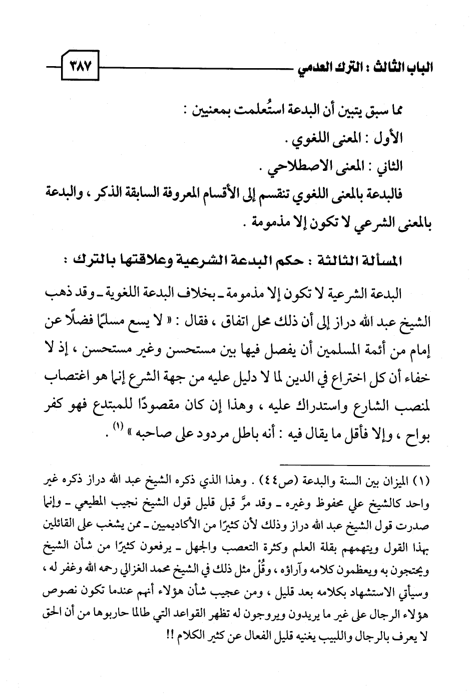 المسألة الثالثة: حكم البدعة الشرعية وعلاقتها بالترك: