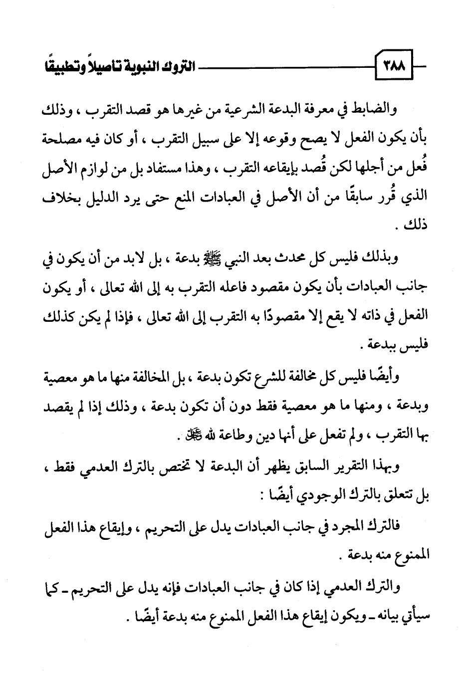 وبهذا التقرير السابق يظهر أن البدعة لا تختص بالترك العدمي فقط، بل تتعلق بالترك الوجودي أيضًا: