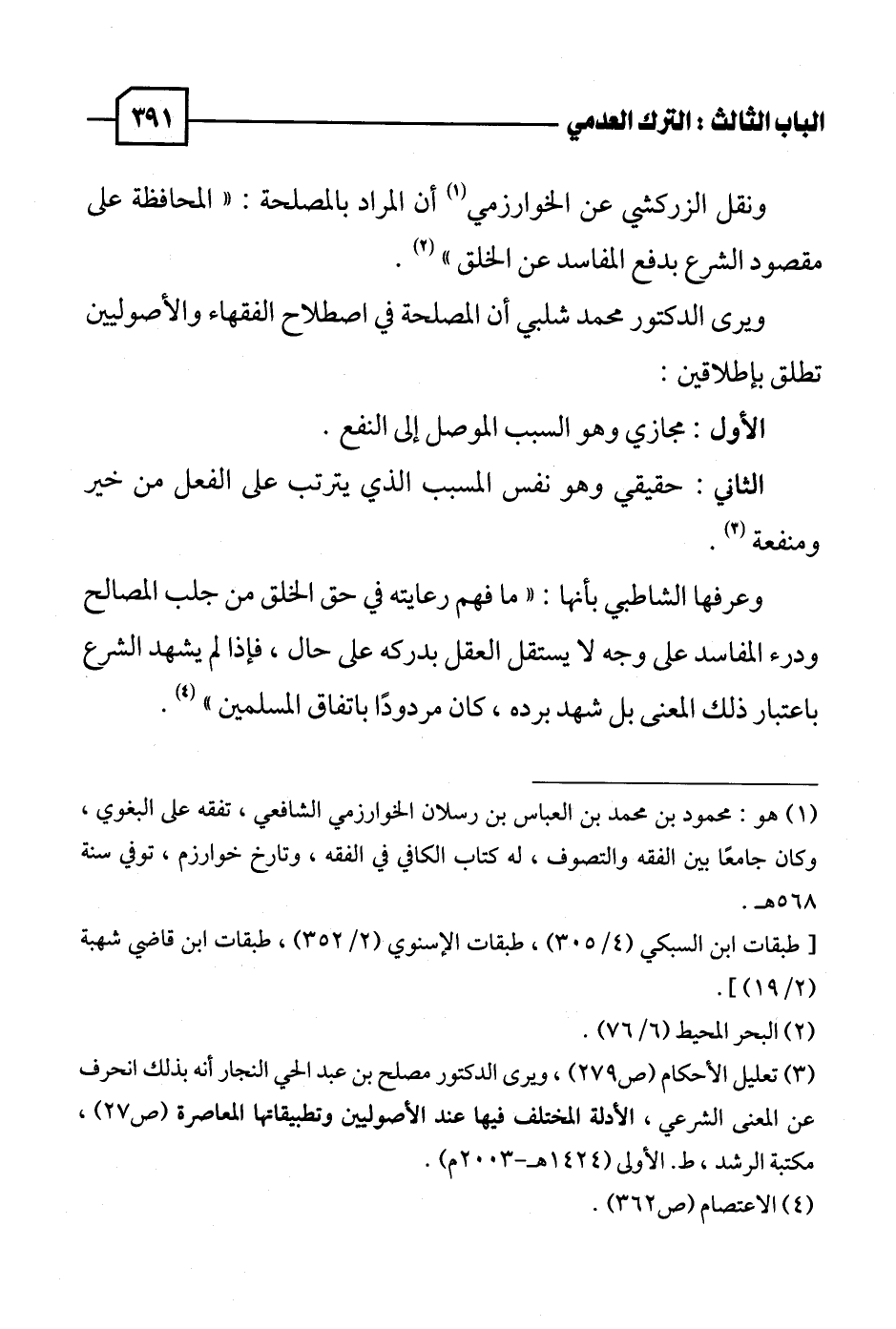 (٣) تعليل الأحكام (ص ٢٧٩)، ويرى الدكتور مصلح بن عبد الحي النجار أنه بذلك انحرف عن المعنى الشرعي، الأدلة المختلف فيها عند الأصوليين وتطبيقاتها المعاصرة (ص ٢٧)، مكتبة الرشد، ط. الأولى (١٤٢٤ هـ - ٢٠٠٣ م).