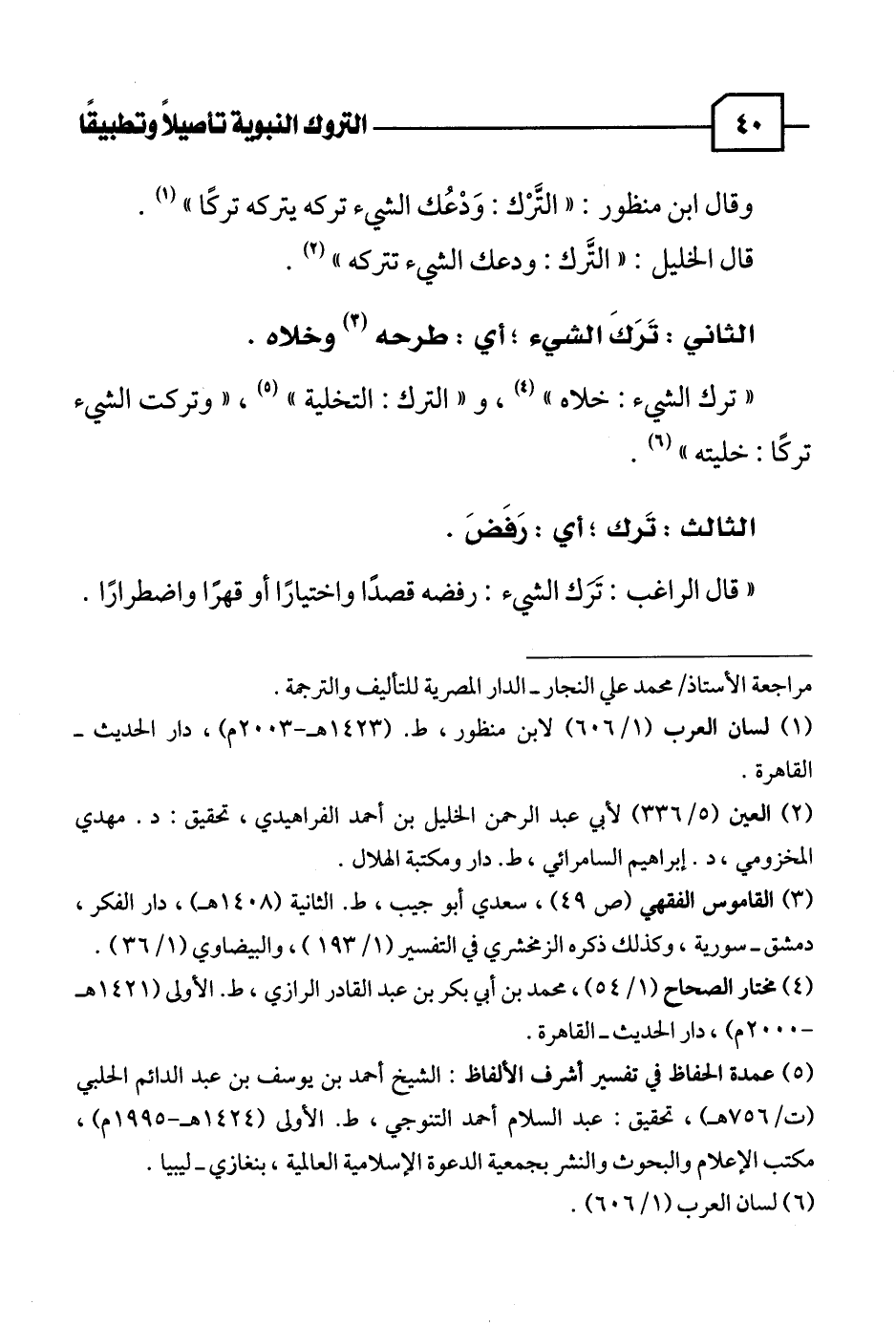(٣) القاموس الفقهي (ص ٤٩)، سعدي أبو جيب، ط. الثانية (١٤٠٨ هـ)، دار الفكر، دمشق - سورية، وكذلك ذكره الزمخشري في التفسير (١/ ١٩٣)، والبيضاوي (١/ ٣٦).