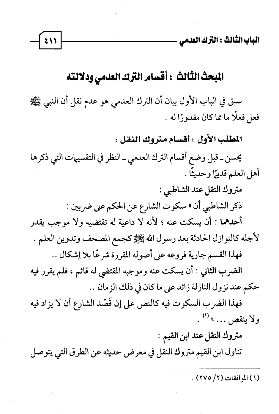 تناول ابن القيم متروك النقل في معرض حديثه عن الطرق التي يتوصل