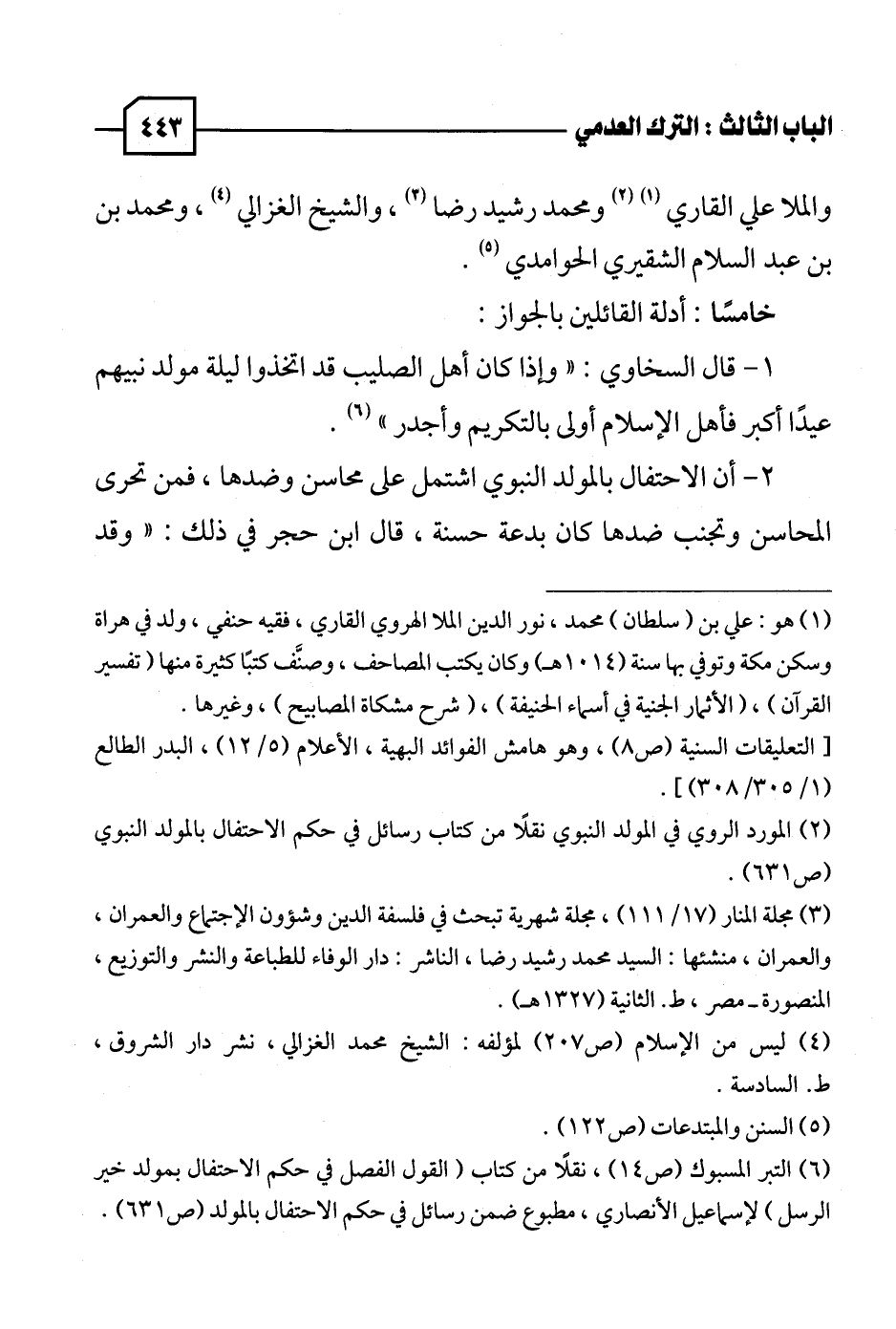 (٦) التبر المسبوك (ص ١٤)، نقلًا من كتاب (القول الفصل في حكم الاحتفال بمولد خير الرسل) لإسماعيل الأنصاري، مطبوع ضمن رسائل في حكم الاحتفال بالمولد (ص ٦٣١).