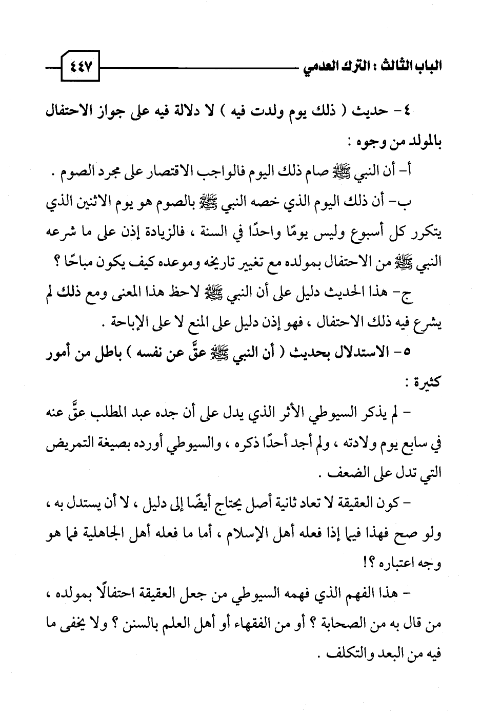 ٤ - حديث (ذلك يوم ولدت فيه) لا دلالة فيه على جواز الاحتفال بالمولد من وجوه:
