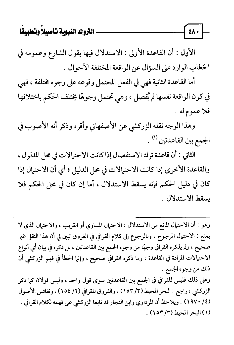 وعلى ذلك فليس للقرافي في الجمع بين القاعدتين سوى قول واحد، وليس قولان كما ذكر الزركشي، راجع: البحر المحيط (٣/ ١٥٣)، والفروق للقرافي (٢/ ١٥٤)، ونفائس الأصول (٤/ ١٩٧٠). ويلاحظ أن المرداوي وابن النجار قد تابعا الزركشي على فهمه لكلام القرافي.