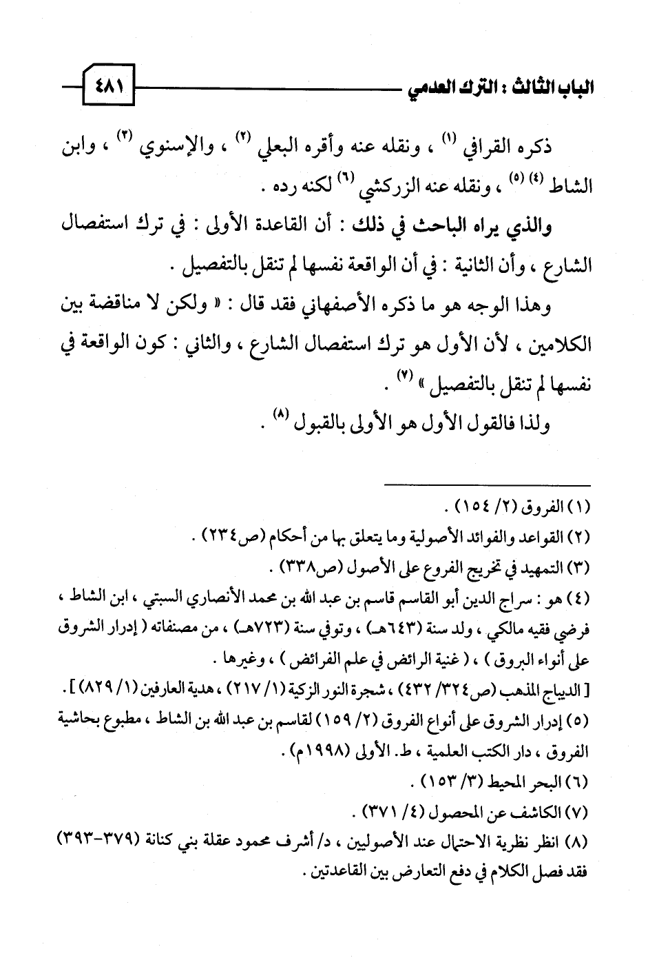 (٥) إدرار الشروق على أنواع الفروق (٢/ ١٥٩) لقاسم بن عبد الله بن الشاط، مطبوع بحاشية الفروق، دار الكتب العلمية، ط. الأولى (١٩٩٨ م).
