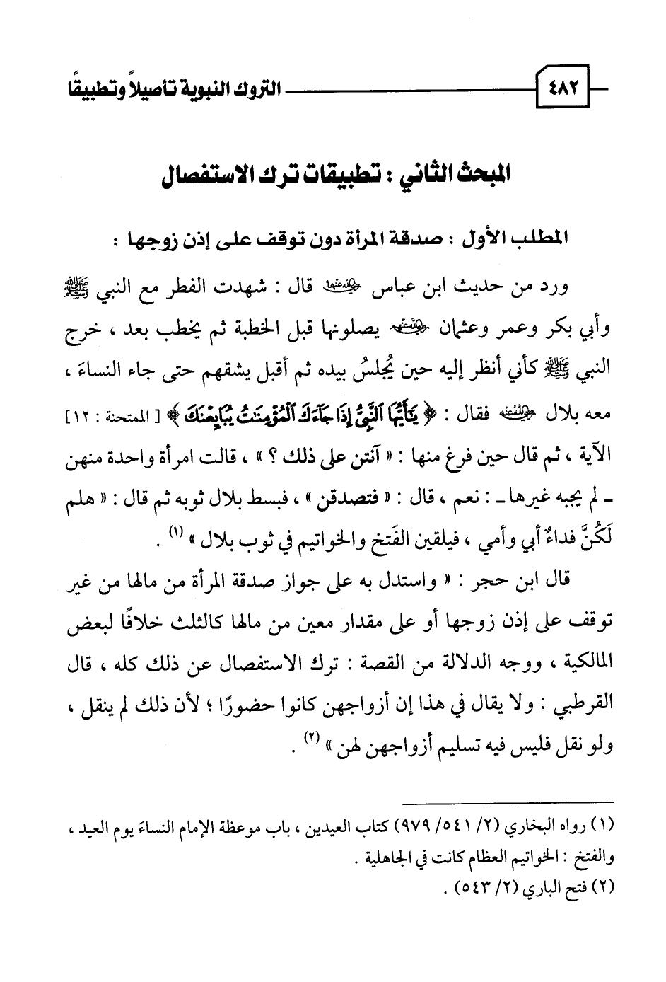 المطلب الأول: صدقة المرأة دون توقف على إذن زوجها:
