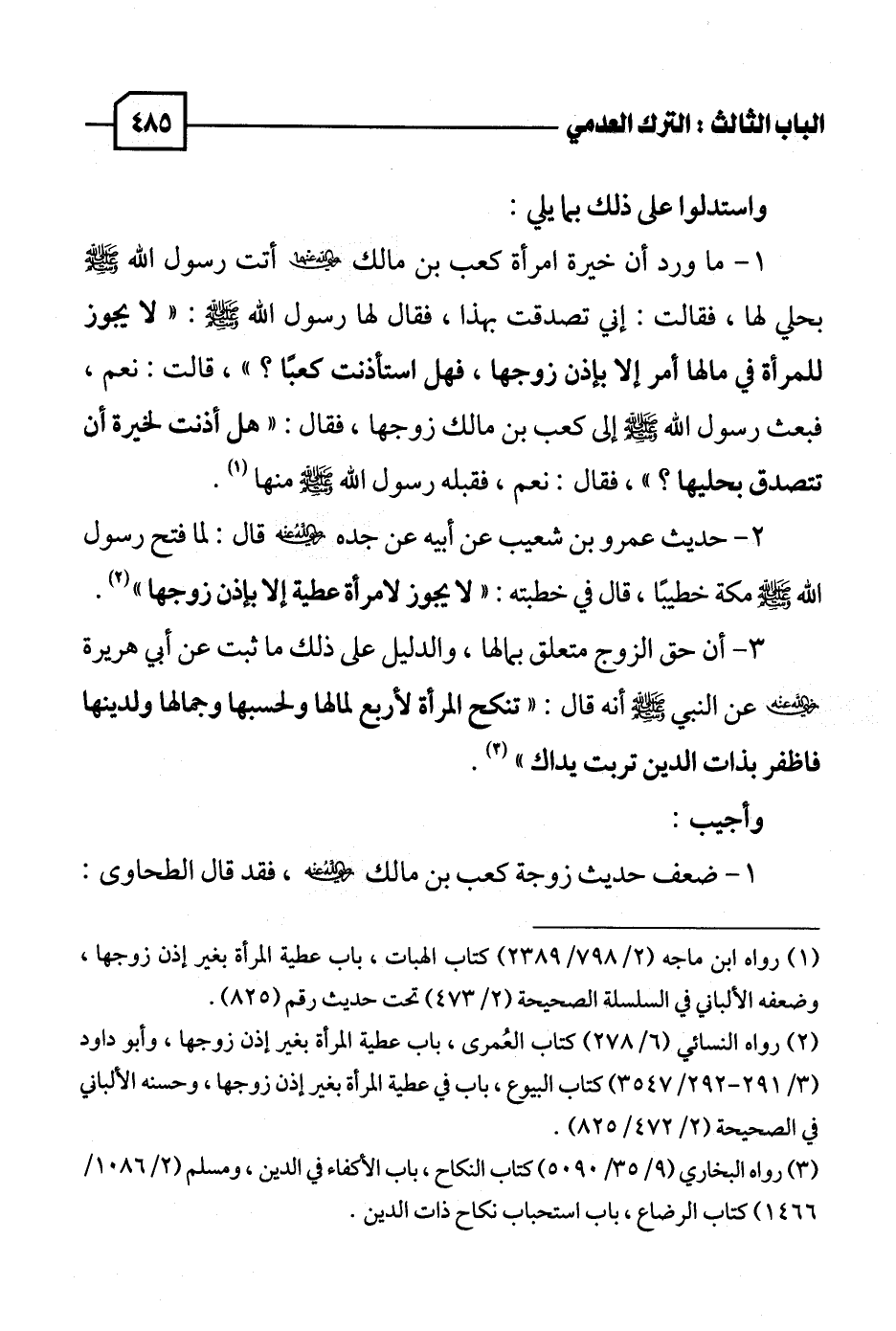 (١) رواه ابن ماجه (٢/ ٧٩٨ / ٢٣٨٩) كتاب الهبات، باب عطية المرأة بغير إذن زوجها، وضعفه الألباني في السلسلة الصحيحة (٢/ ٤٧٣) تحت حديث رقم (٨٢٥).