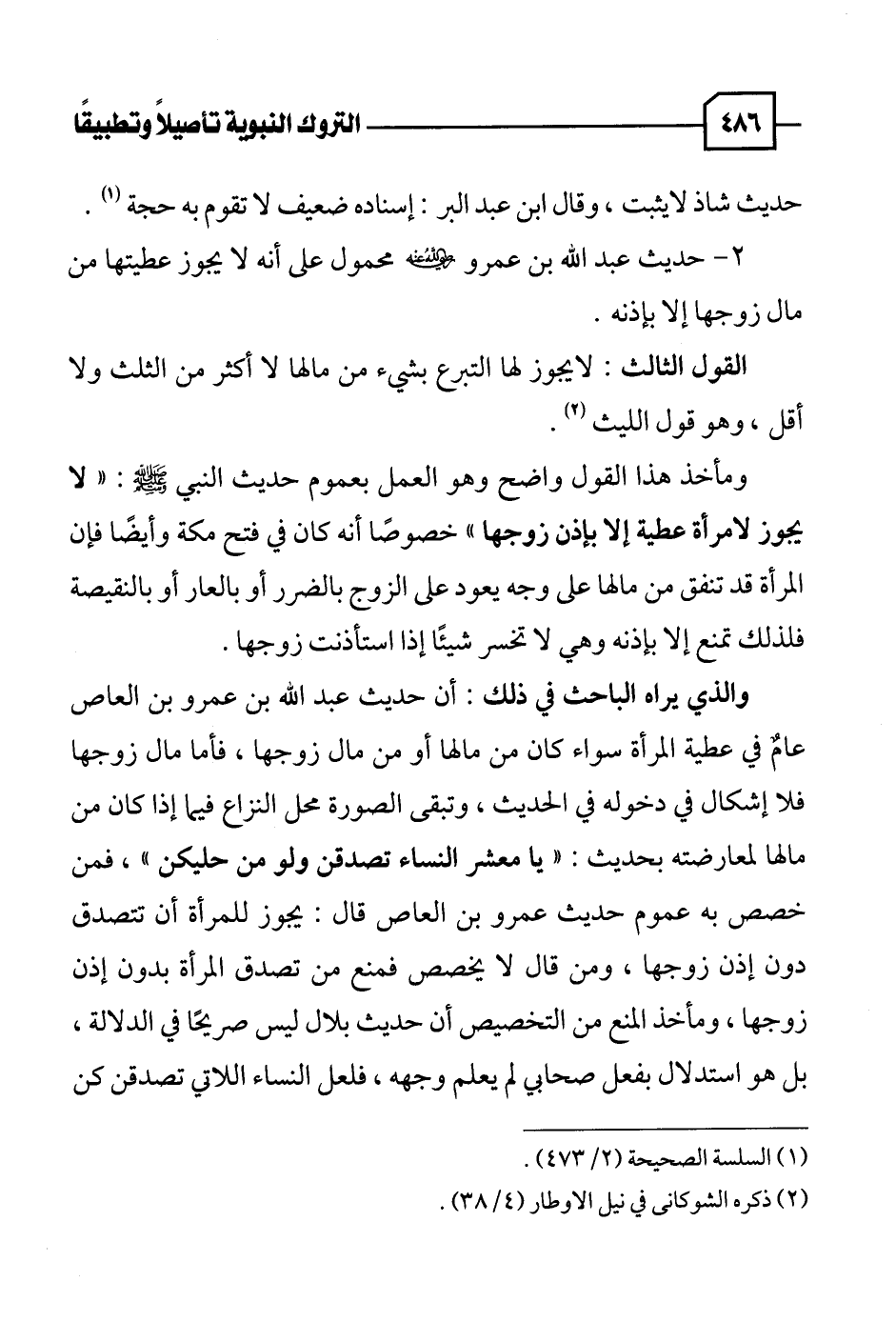 ٢ - حديث عبد الله بن عمرو - رضي الله عنه - محمول على أنه لا يجوز عطيتها من مال زوجها إلا بإذنه.