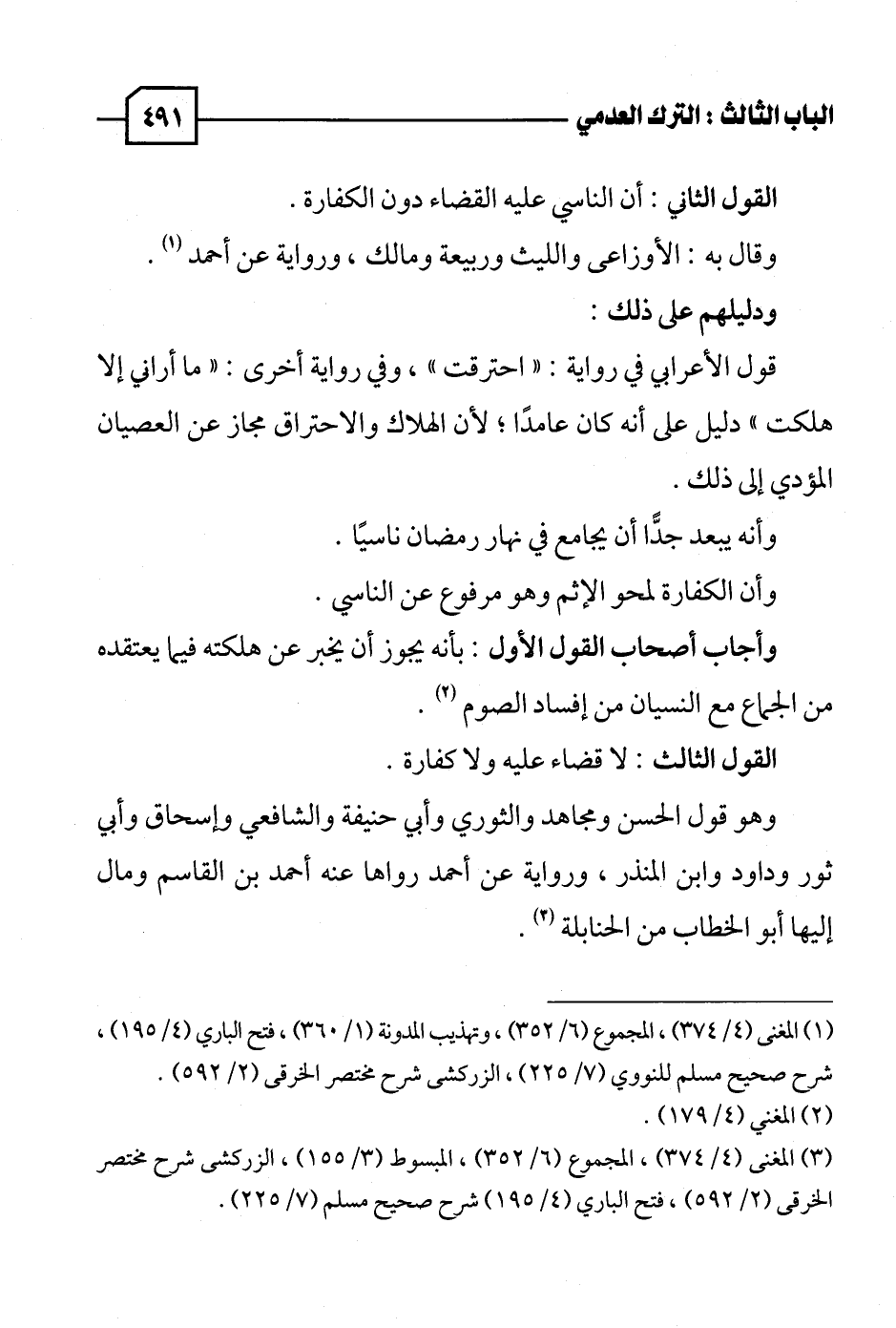 (٣) المغنى (٤/ ٣٧٤)، المجموع (٦/ ٣٥٢)، المبسوط (٣/ ١٥٥)، الزركشى شرح مختصر الخرقى (٢/ ٥٩٢)، فتح الباري (٤/ ١٩٥) شرح صحيح مسلم (٧/ ٢٢٥).