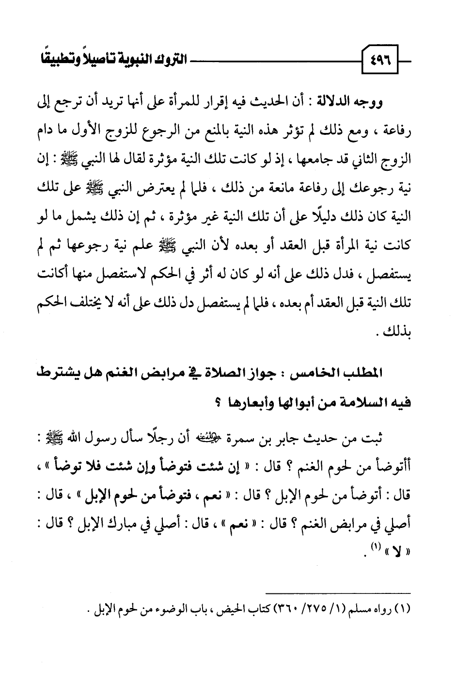 المطلب الخامس: جواز الصلاة في مرابض الغنم هل يشترط فيه السلامة من أبوالها وأبعارها؟