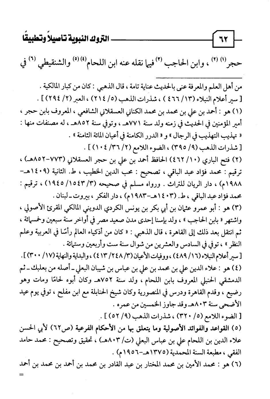 (٥) القواعد والفوائد الأصولية وما يتعلق بها من الأحكام الفرعية (ص ٦٢) لأبي الحسن علاء الدين بن اللحام علي بن عباس البعلي (ت/ ٨٠٣ هـ)، تحقيق وتصحيح: محمد حامد الفقي، مطبعة السنة المحمدية (١٣٧٥ هـ - ١٩٥٦ م).