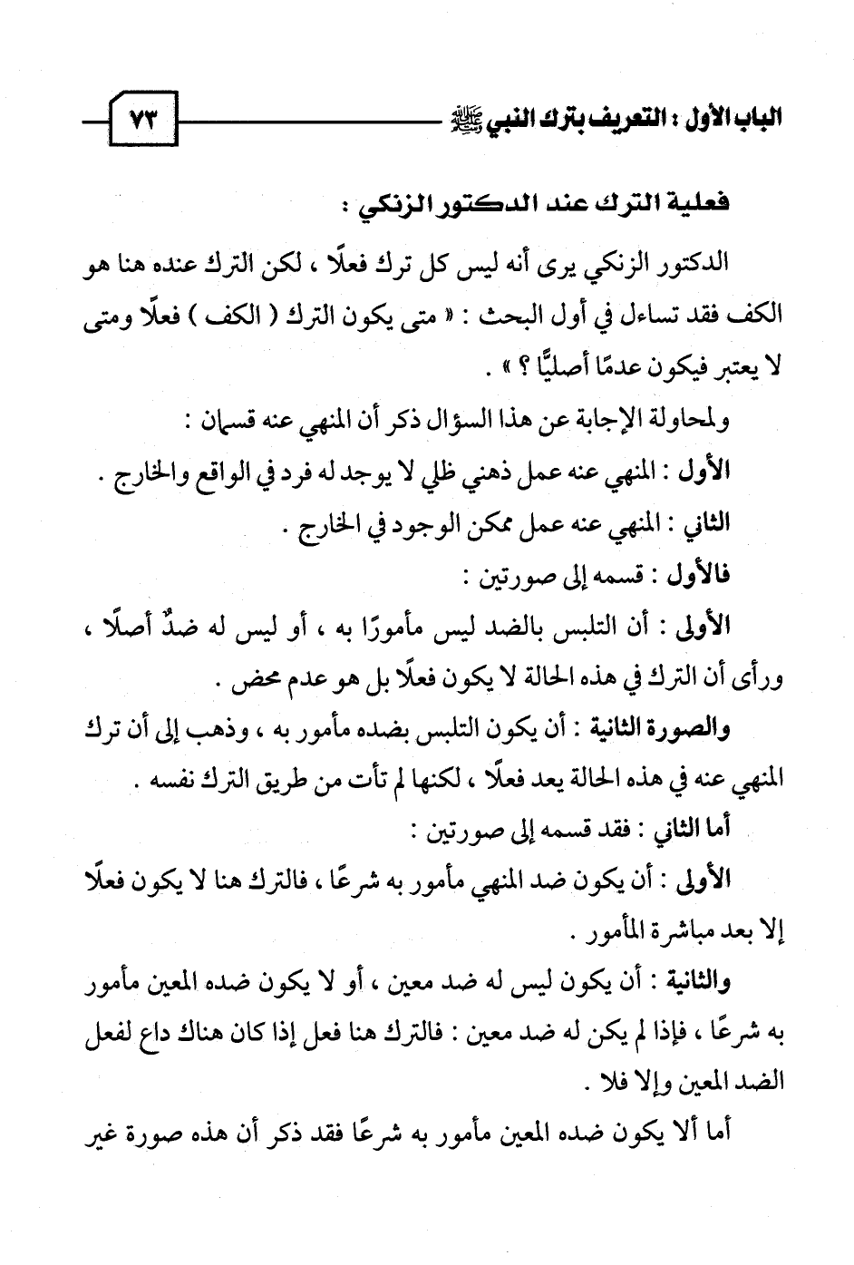 الدكتوو الزنكي يرى أنه ليس كل ترك فعلاً، لكن الترك عنده هنا هو الكف فقد تساءل في أول البحث: "متى يكون الترك (الكف) فعلاً ومتى لا يعتبر فيكلون عدمًا أصليًا؟ ".