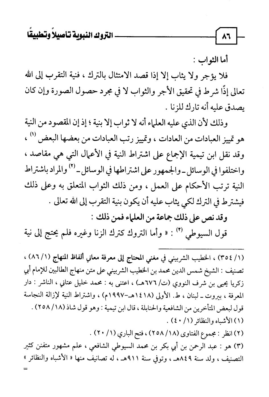 قول السيوطي (٣): "وأما التروك كترك الزنا وغيره فلم يحتج إلى نية