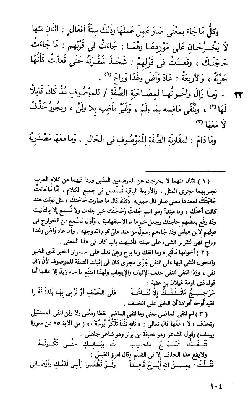 وما زال وأخواتها لمصاحبة الصفة للموصوف مذ كان قابلا لها، وينفى ماضيه بما ولم، وغير ماضيه بلا ولن، ويجوز حذف لا معها.