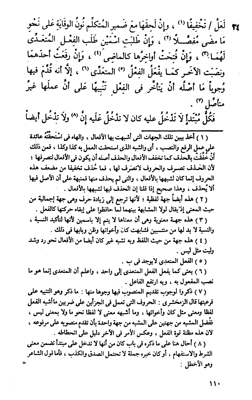لعل تخفيفا، وإن لحقها مع ضمير المتكلم نون الوقاية على نحو ما مضى مفصلا، وإن طلبت اسمين طلب الفعل المتعدي لهما، وإن فتحت أواخرها كالماضي، وإن رفعت أحدهما ونصبت الآخر كما يفعل الفعل المتعدي، إلا أنه قدم فيها وجوبا ما أصله أن يتأخر في الفعل تنبيها على أن عملها غيرُ متأصل.